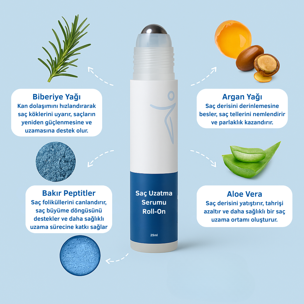 Elouris Saç Uzatma Serumu Roll-On, saç köklerinizi doğrudan besleyerek saç dökülmesine karşı savaşır.